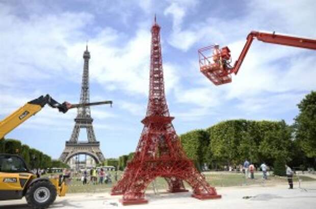 The mini-Eiffel Tower stands 13 metres high and has been built using 324 of the iconic chairs. The mini-me is located in spitting distance of Gustave Eiffel’s iconic tower on Champ De Mars and has been erected just in time for the busiest period of tourism within the French capital.