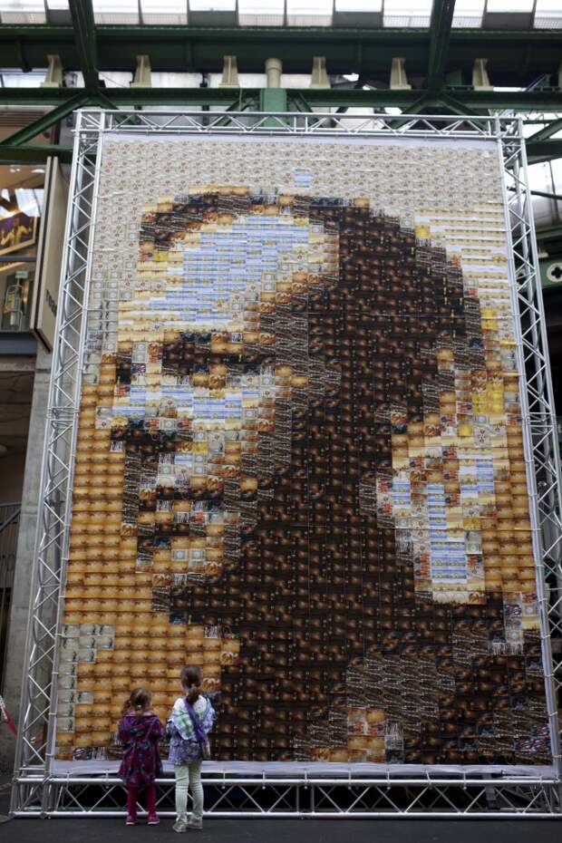 The portrait, commissioned by Twentieth Century Fox Home Entertainment, was created by artist Quentin Devine on a 24 metre square canvas in 24 hours, by laying one postcard every minute in order to meet the deadline.
